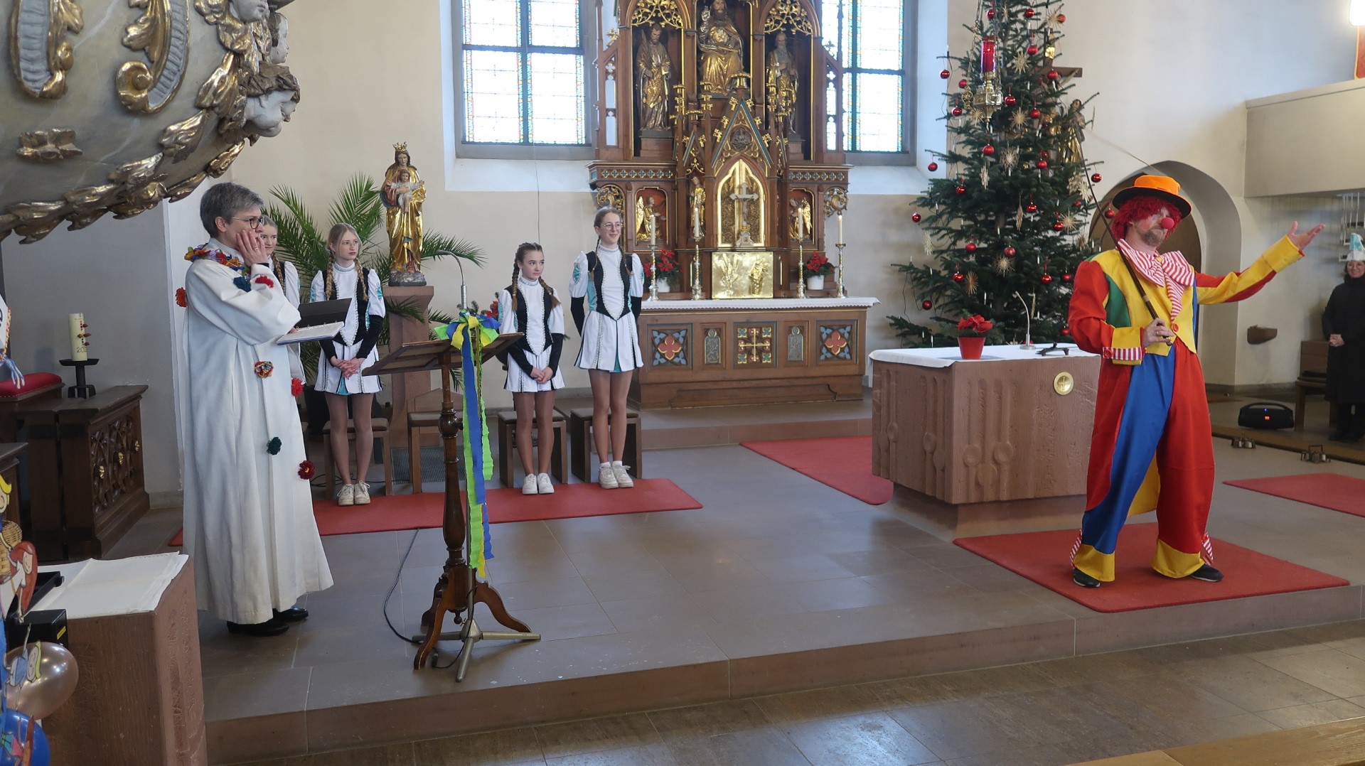 Clown, Elferrat und Garde unter den Gottesdienstbesuchern