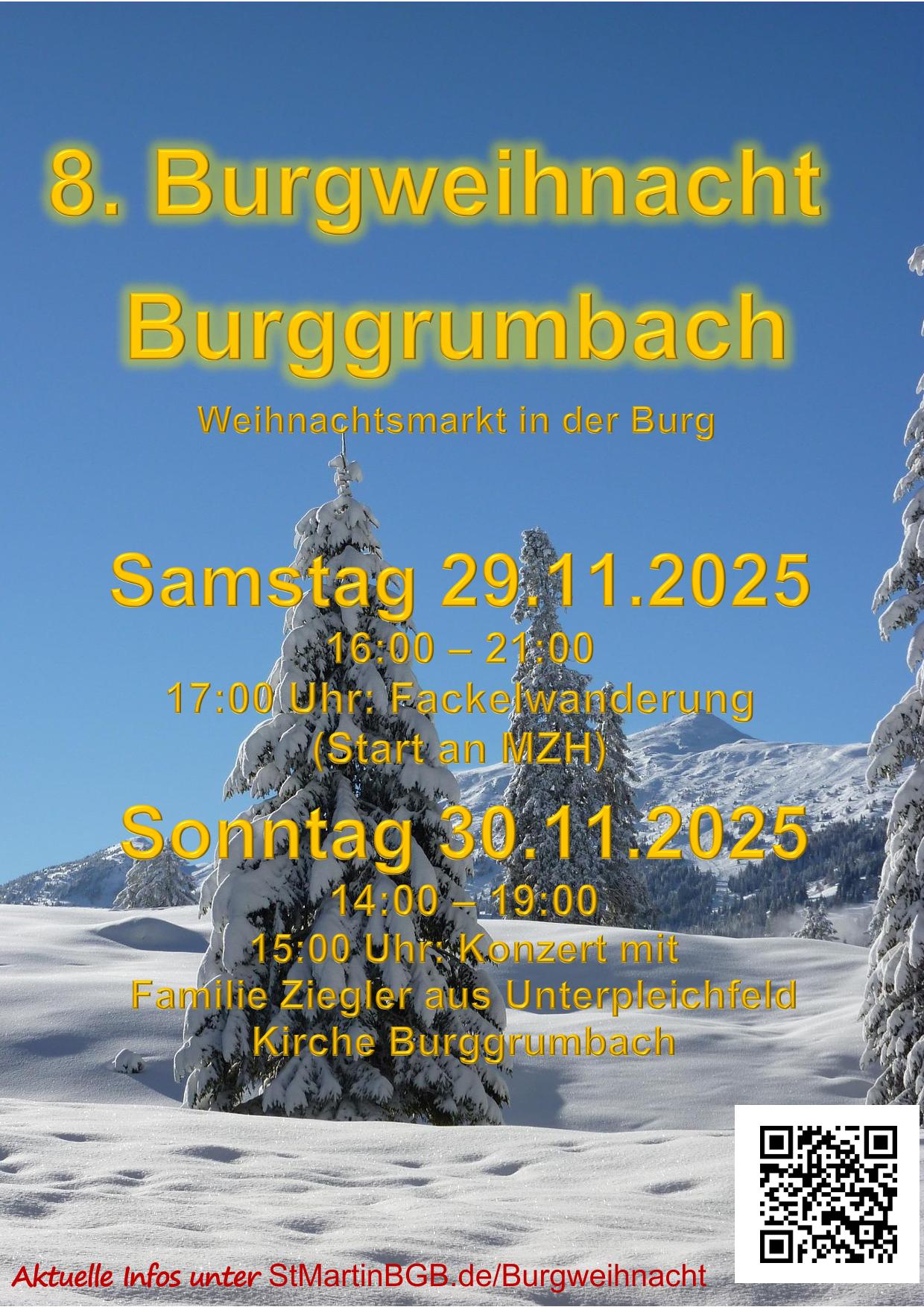 | 15:00 | Adventliches Konzert mit der Famiie Ziegler aus Unterpleichfeld | In der Pfarrkirche St. Martin Burgweihnacht 2025 - Einladung zum adventliches Konzert |