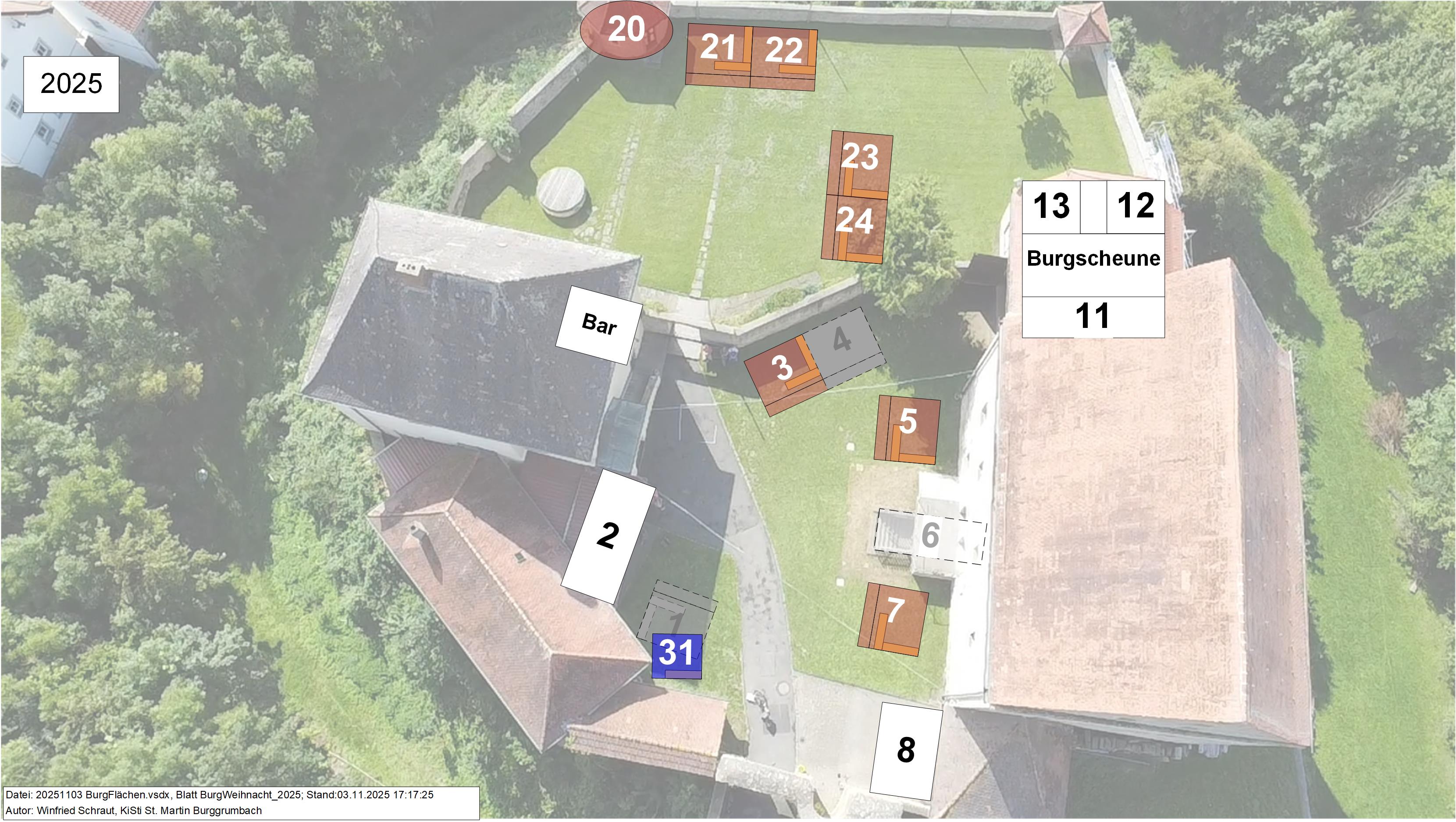 Für die Burgweihnacht 2025 ist folgender Standaufbau geplant: